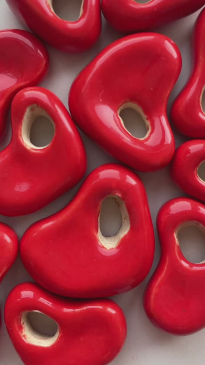 INCLUDES: Pair of hoops + Pair of M ceramic pieces 100% handmade in the shape of a heart in lava red color. No two will be exactly alike.